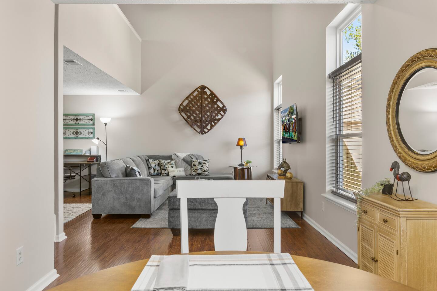 Welcome to this charming 3-bedroom, 2.5 bathroom home, featuring a bonus loft space and a fenced yard. Enjoy the convenience of a 2-car garage and an in-home laundry room during your stay. Located in a wonderful neighborhood, you're just minutes from Georgetown’s top attractions. The Kentucky Horse Park is only a 15-minute drive away, and downtown Lexington is easily within reach.