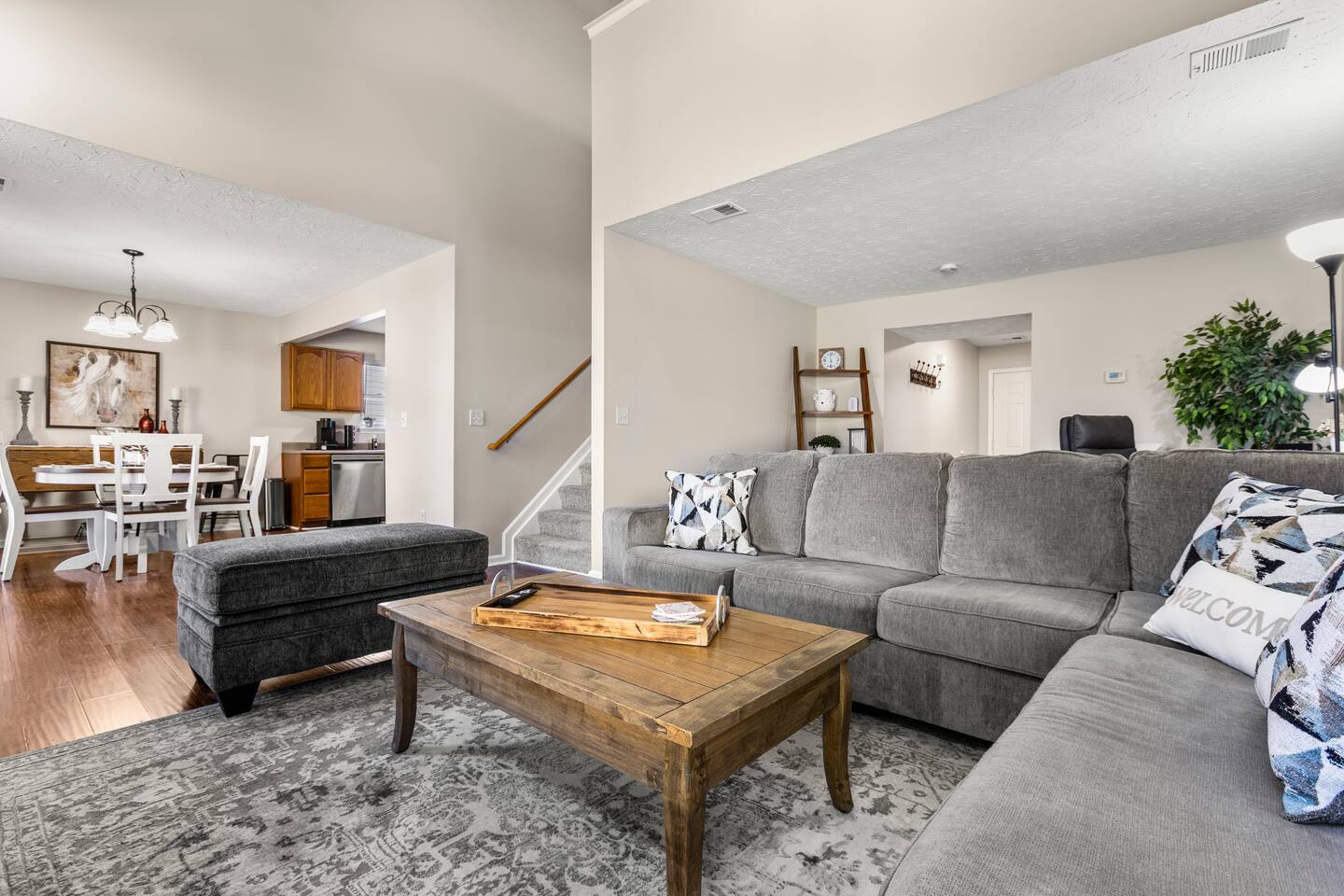 We are in the middle of building a house (and living in an RV). My son also just sold his house and living with his in laws until they can build. This house was perfect for my family to come together and celebrate Thanksgiving. We all loved it, even the kids! They loved having the separate sitting area to watch what they wanted on TV.