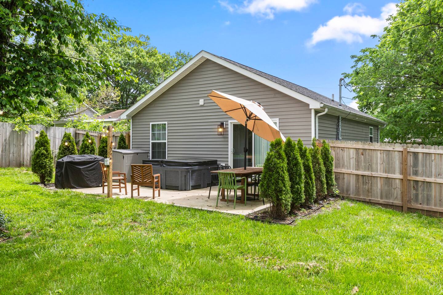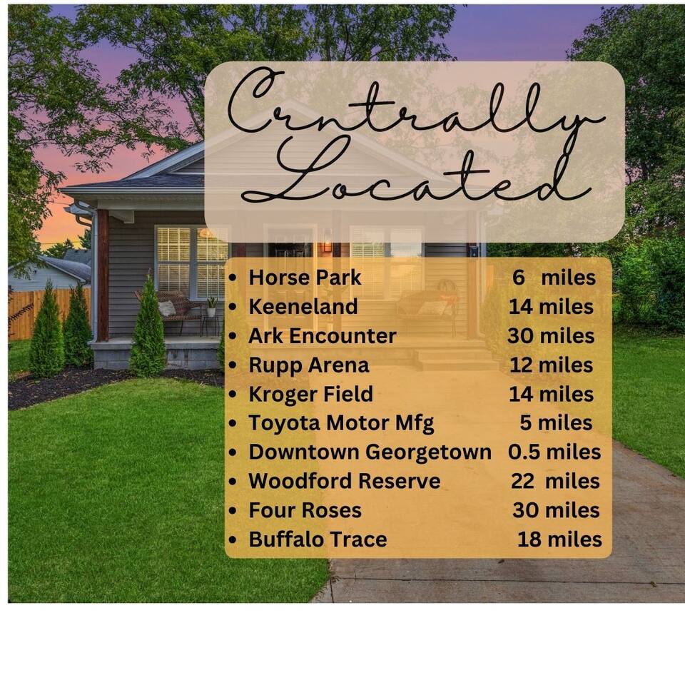 Experience the perfect blend of old charm and contemporary. Nestled on a tranquil street, you'll find yourself just a short stroll away from boutique shops, delectable dining options, Georgetown College, and picturesque parks. Additionally, the Kentucky Horse Park and interstate access are conveniently minutes drive away. Outside, indulge in your very own private backyard retreat, complete with a soothing hot tub , stone grill for al fresco dining pleasure, and a playground for the kiddos.