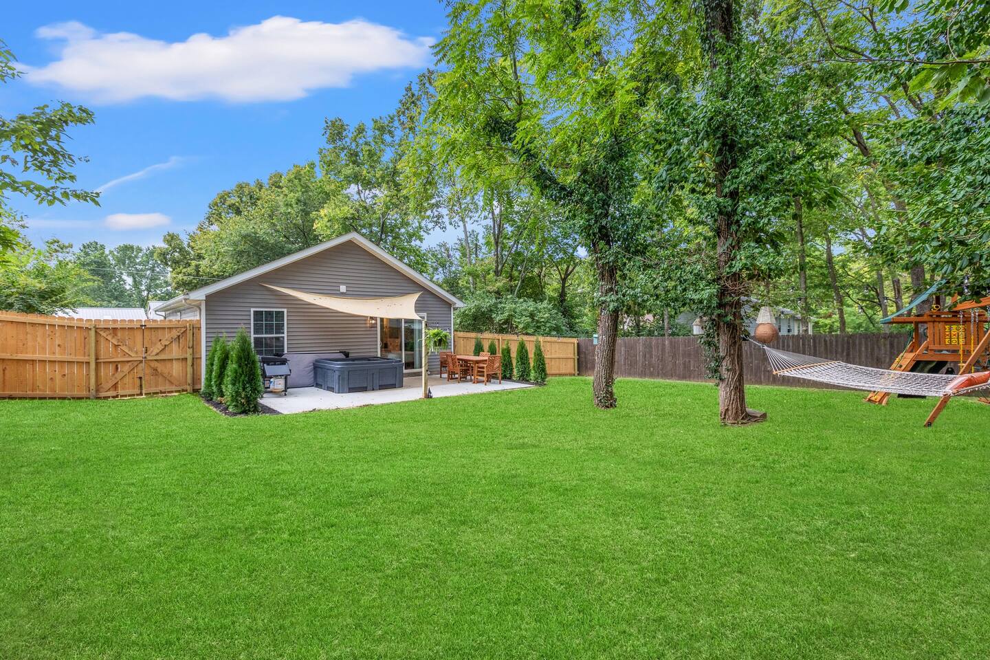 Step foot into a perfect garden themed Bungalow, where you will find garden themed decor, plush mattresses in every bedroom, a fully equipped kitchen for all your cooking or entertaining needs. Enjoy our private backyard to relax. This has something for everyone. Let the kids play on the playground and hunt for hidden bird houses, relax in the hot tub and have dinner under the stars.