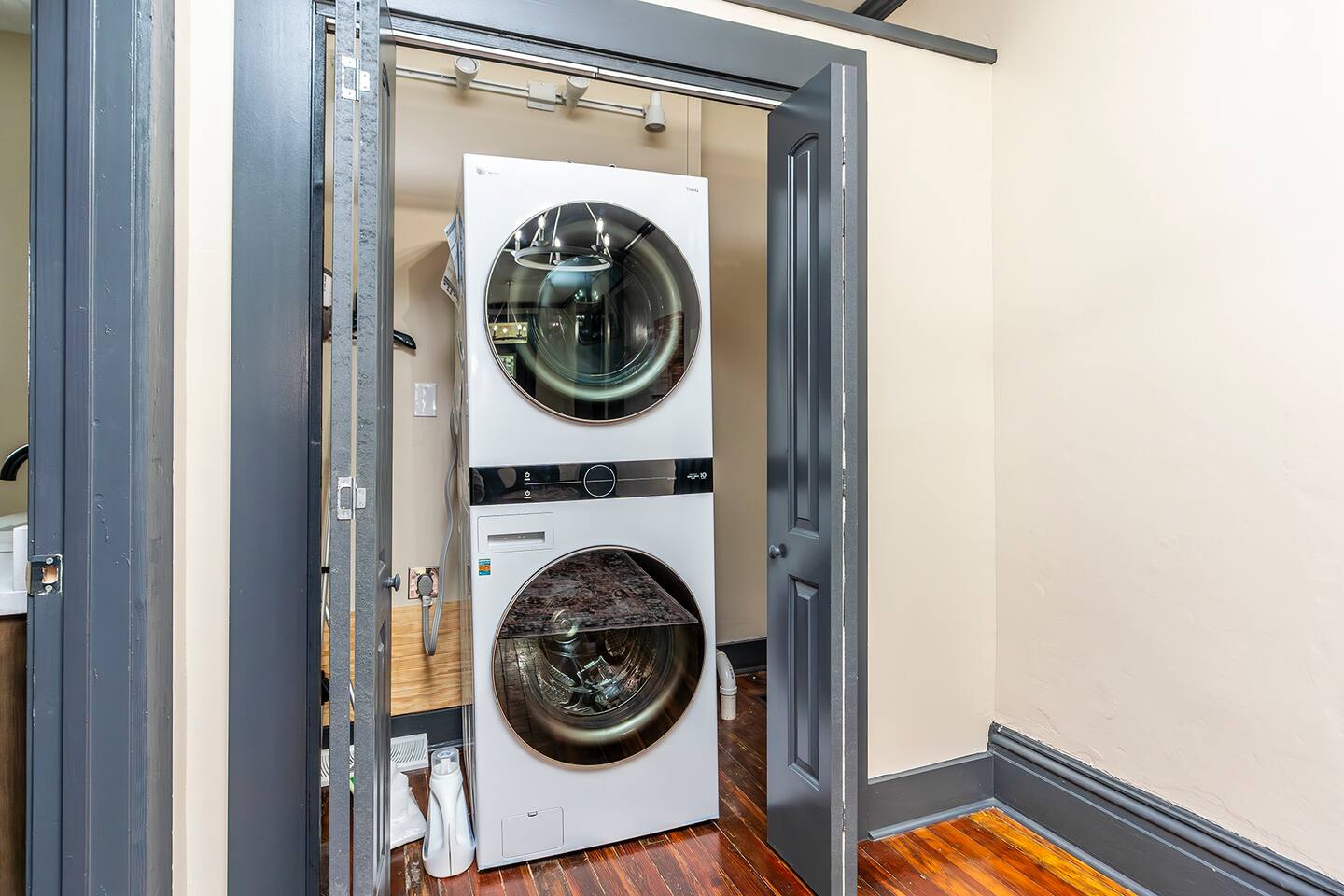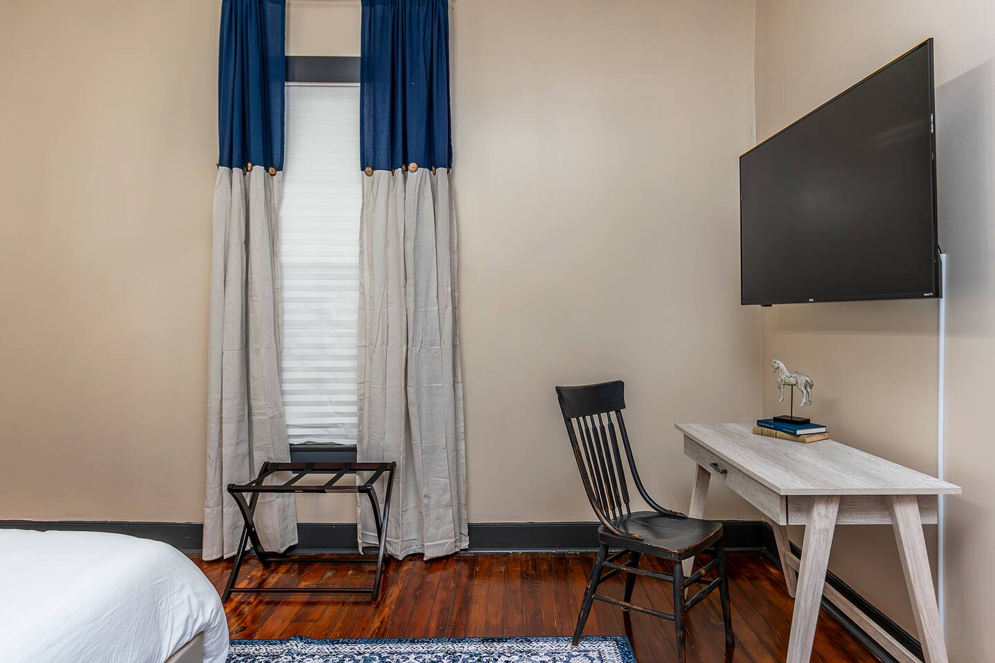Private parking located at the back of the home. Easily assessed by car or truck. Walking distance to downtown. Free public parking offered downtown if you would rather drive to attractions.