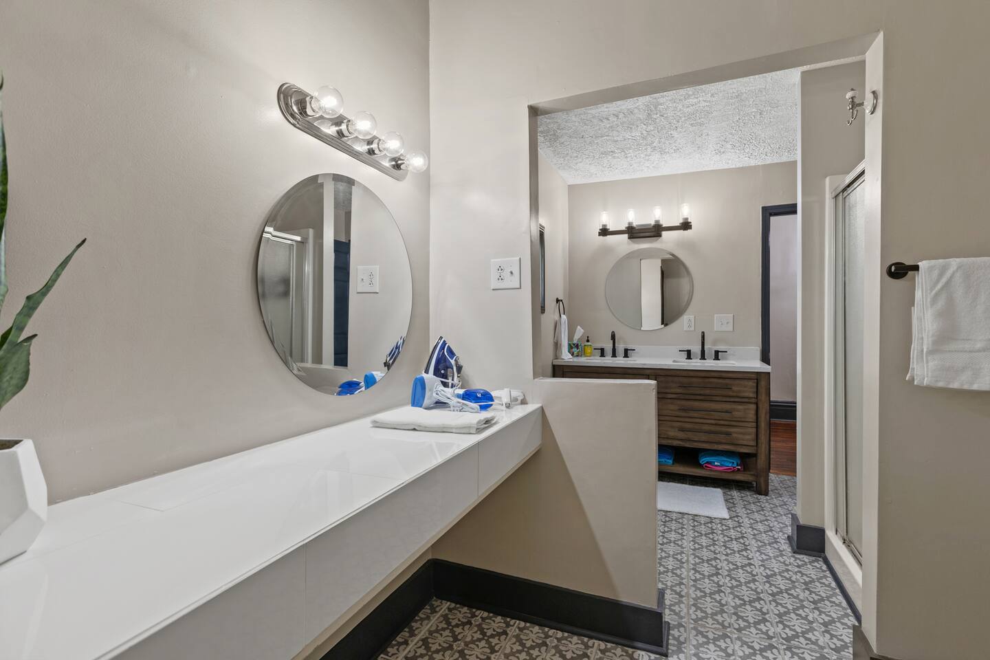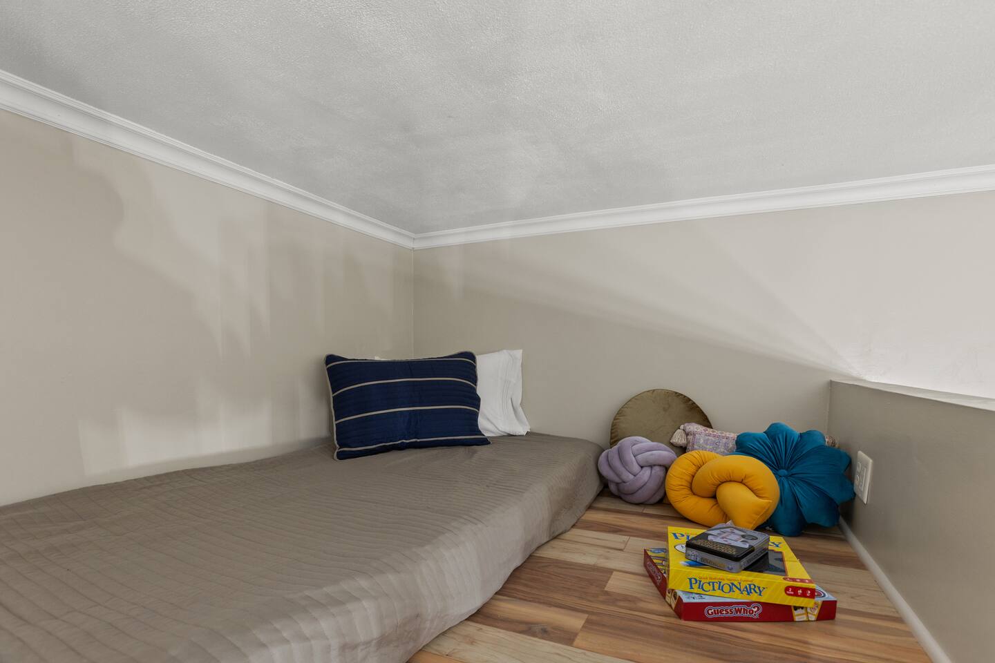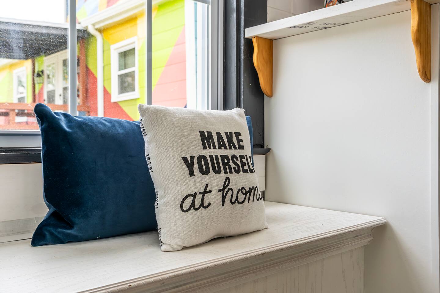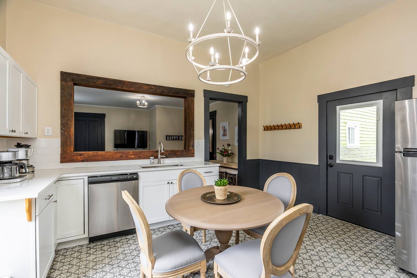 Remodeled historical bungalow with large rooms. Two of which have king beds. One with a walk in closet, allowing for ample storage. One bedroom with a queen bed and walk in closet with en suite bathroom. There is a loft space included in the bedroom with two twin beds, great for your older kids or young adults. (Built in permanent ladder to get to loft for access) Home offers deck in the back of the home, and a fully enclosed backyard across from the River Row Boat house. Perfect for summer night entertaining.