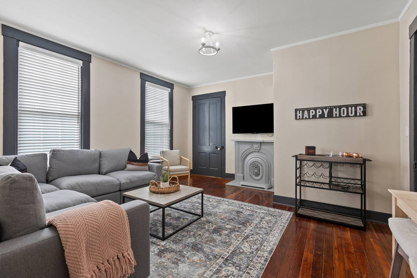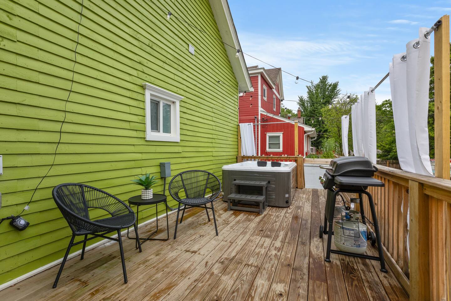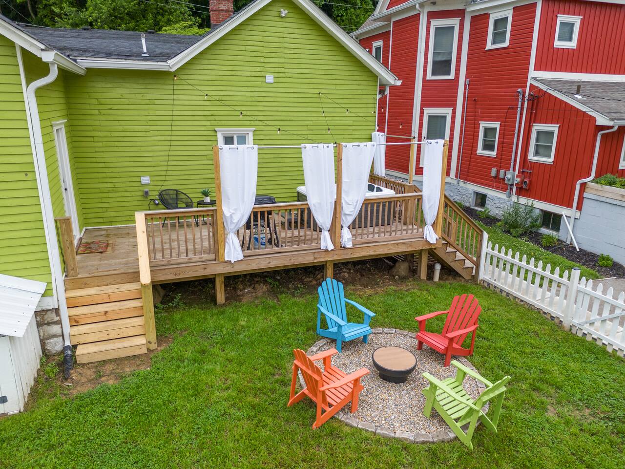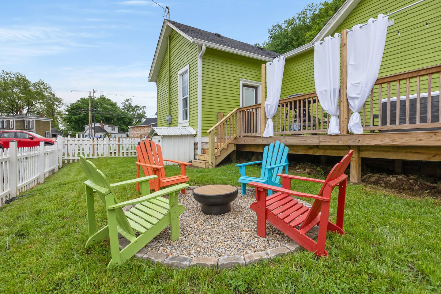Come visit the River Row District. Located in the heart of Downtown Frankfort. Within walking distance to shops, dining, bourbon, live music and the Capitol Building! Discover what Frankfort has to offer during the day. Come home to relax in the hot tub and enjoy a fire in the yard. Have your morning coffee and relax in the swing under the covered porch, while listening to the church bells. Sleeps 8 with two king beds, 1 queen bed and two twin beds in a loft space within the queen bedroom.