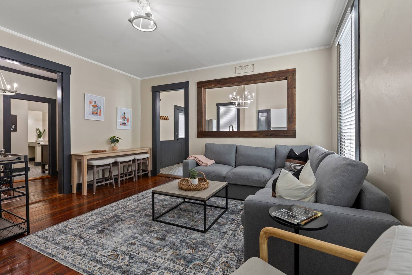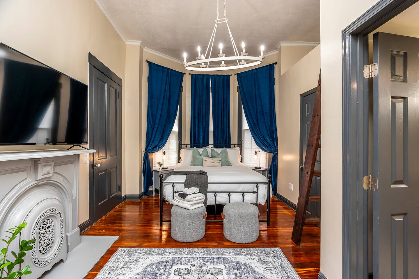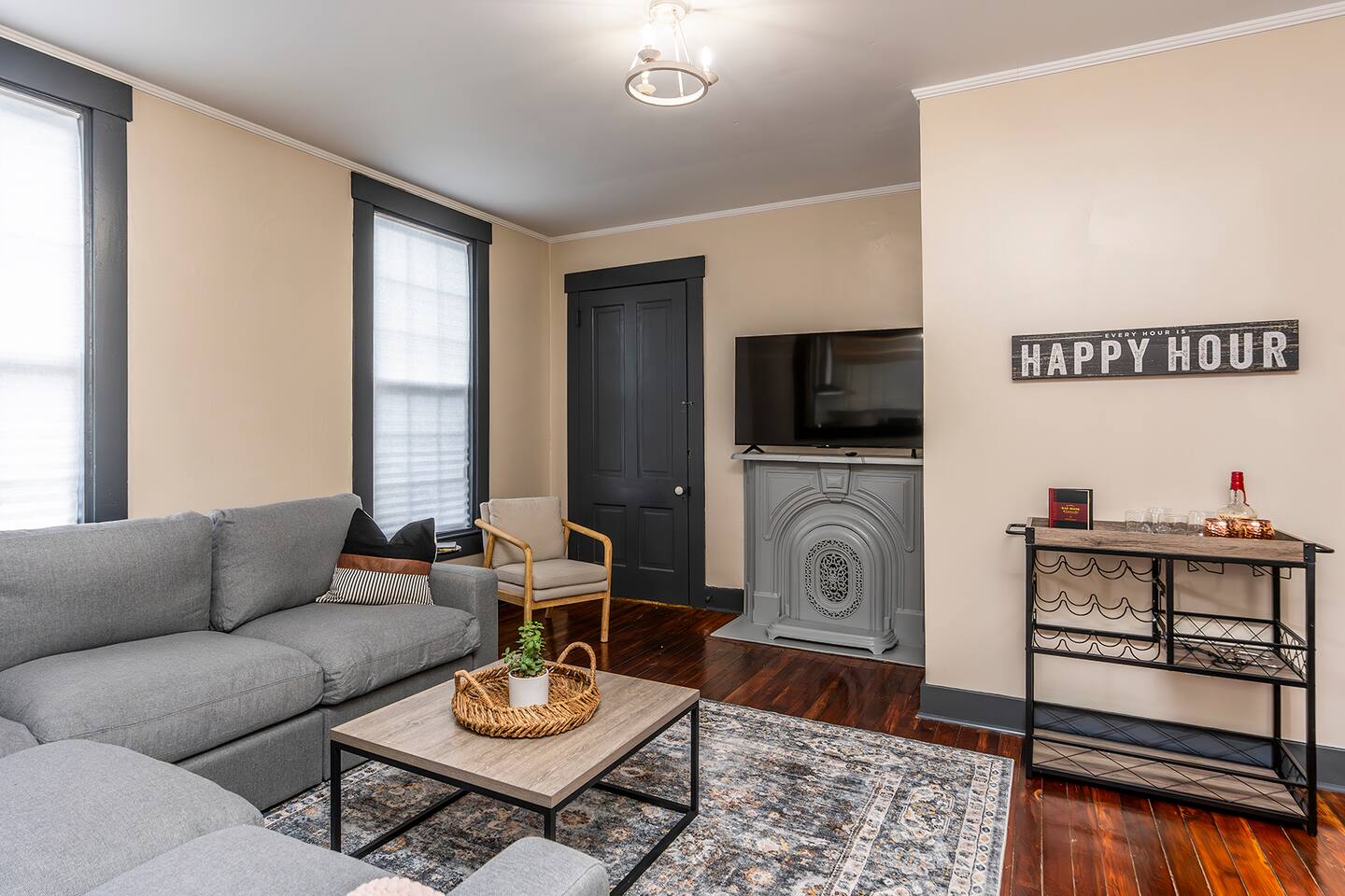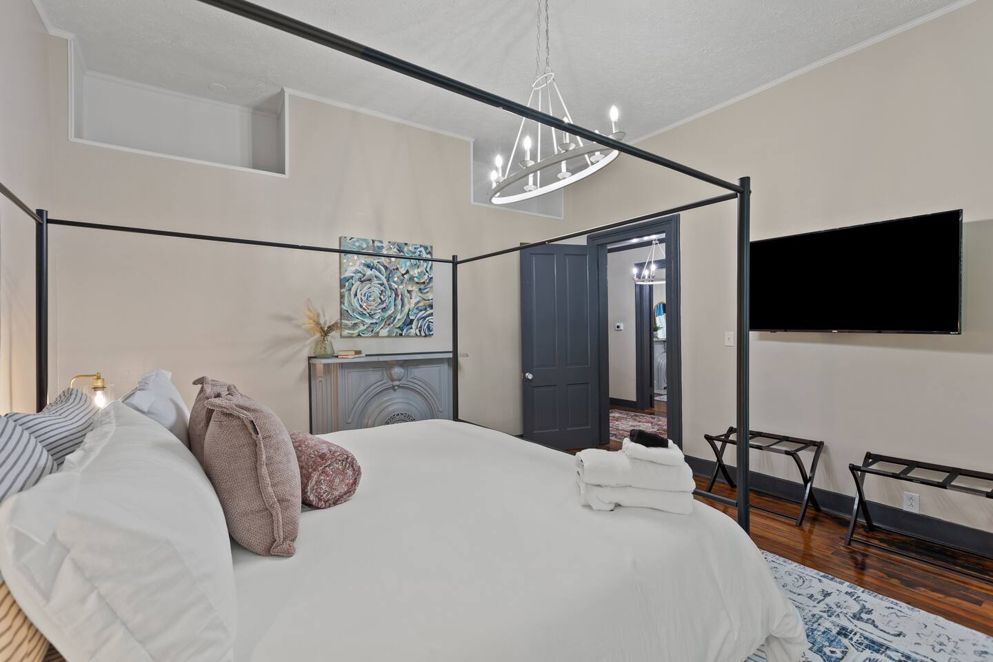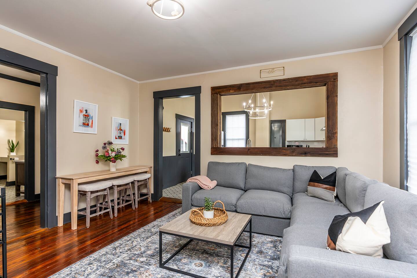 Come visit the River Row District. Located in the heart of Downtown Frankfort. Within walking distance to shops, dining, bourbon, live music and the Capitol Building! Discover what Frankfort has to offer during the day. Come home to relax in the hot tub and enjoy a fire in the yard. Have your morning coffee and relax in the swing under the covered porch, while listening to the church bells. Sleeps 8 with two king beds, 1 queen bed and two twin beds in a loft space within the queen bedroom.