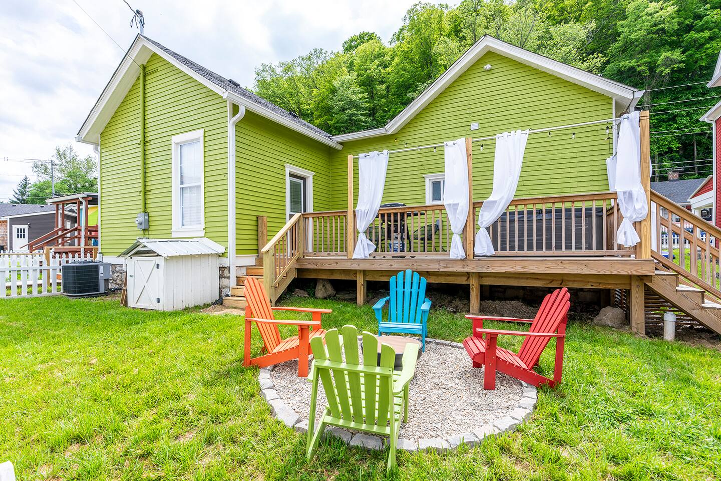 We offer a key code at the back door, within steps of parking. Our home river adjacent, allowing you to enjoy water views with the public deck and walkway down to the Kentucky River. The Boat House offers kayak rentals during the summer.