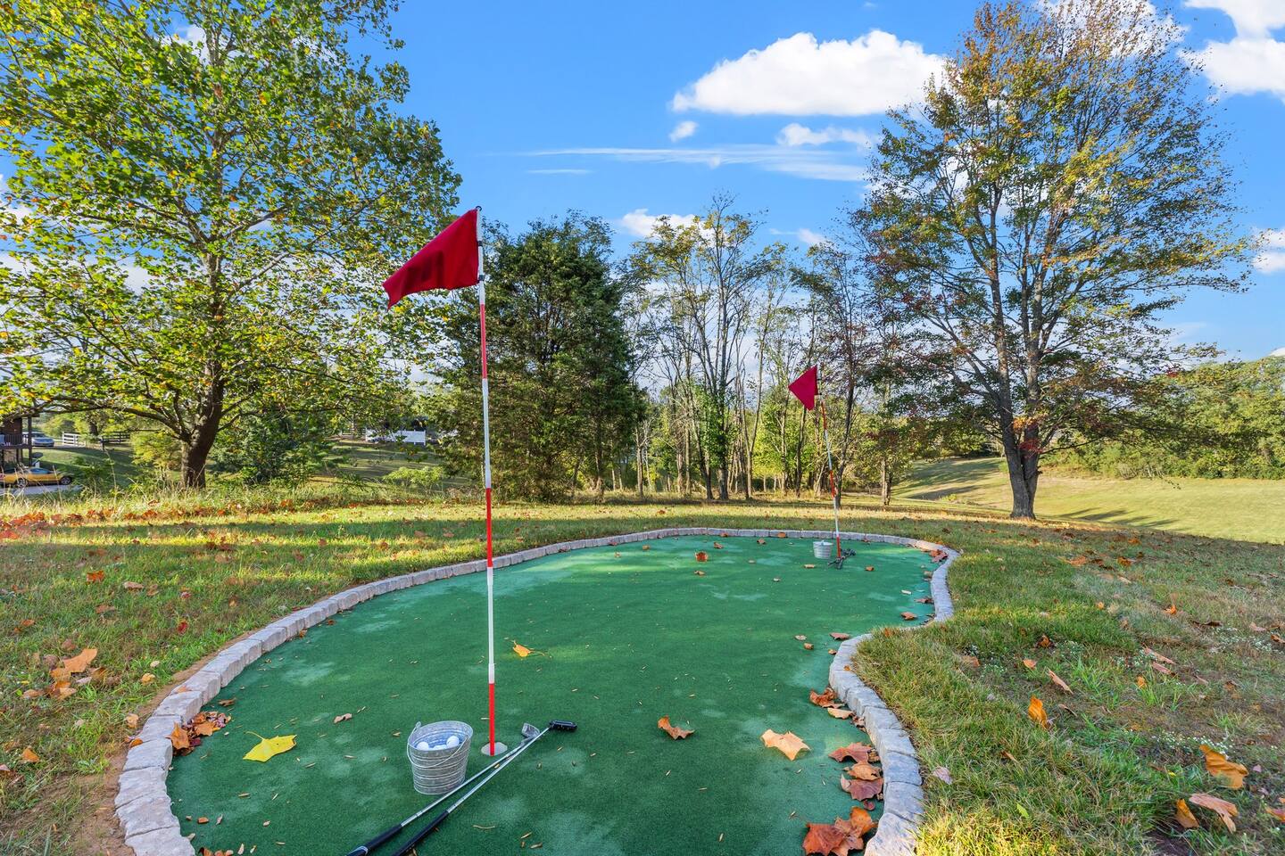 The front bedroom has a queen bed with 40" Tv. The second bedroom features a king bed with 40" tv. The living room is equipped with a sleeper sofa that pulls out. This unit has a fully equipped kitchen with everything you may need. Outdoor space features private deck, hot tub, grill as well as a communal fire pit area and a putting green for your golfing pleasure!