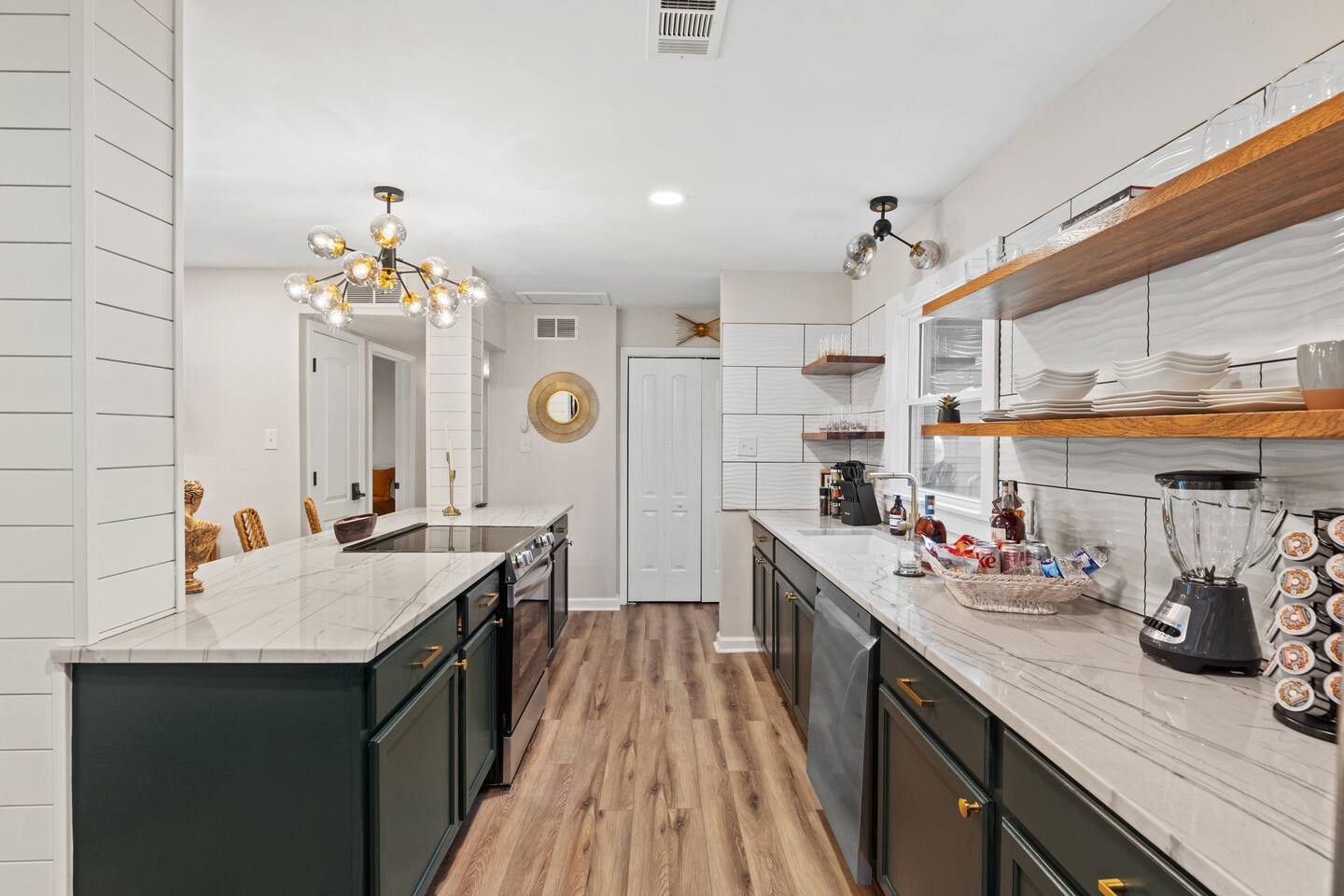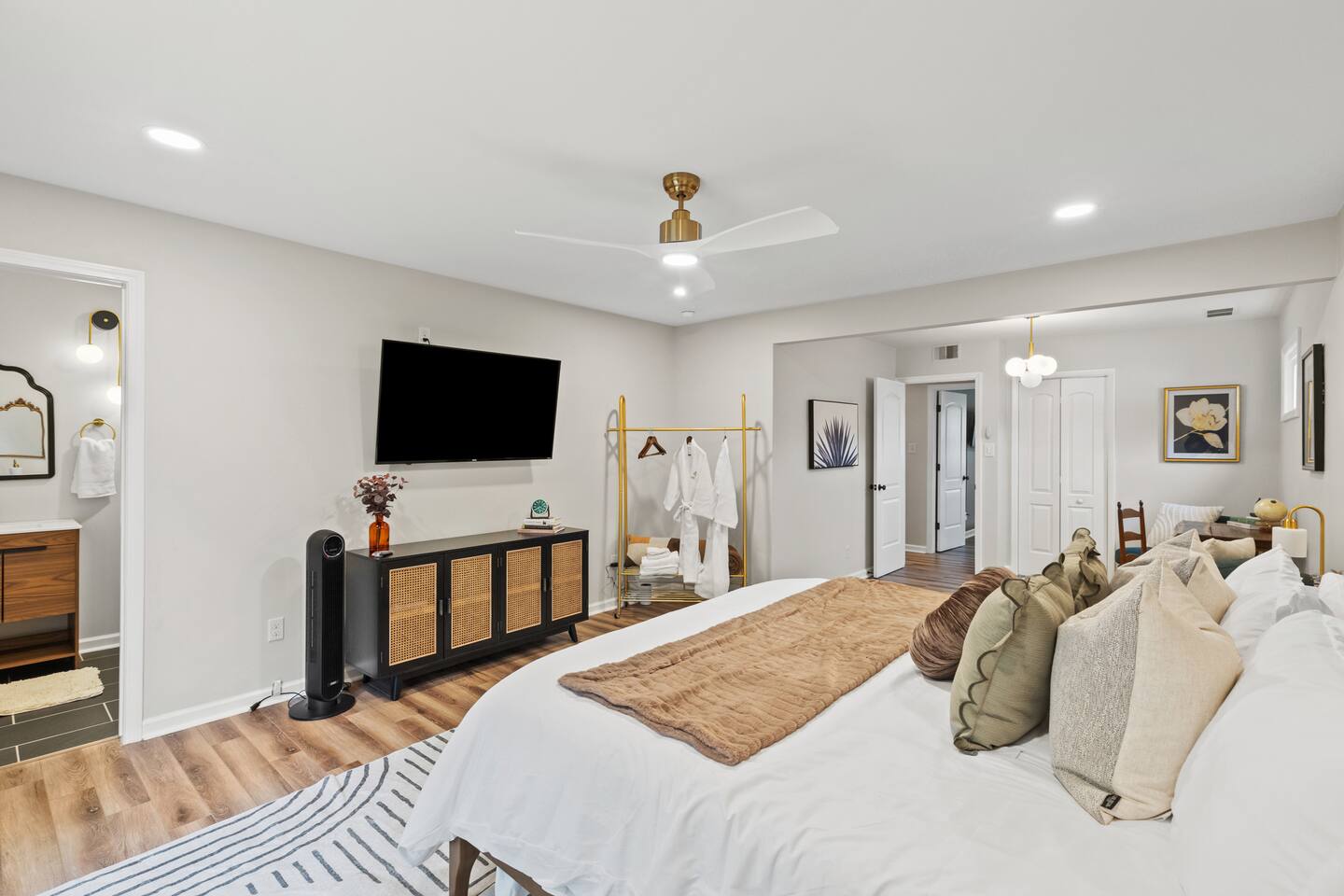 This beautifully remodeled bungalow features three spacious bedrooms, with two king-size beds and one queen. The bright, airy living room flows into a fully equipped kitchen with brand-new appliances. From there, step out into the inviting backyard, where you can relax in the hot tub, gather around the fire pit, or cook on the Blackstone grill
