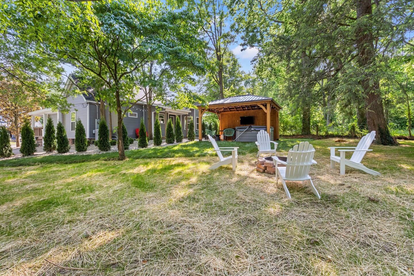 Where elegant vintage meets modern design. Come and enjoy this historic home on a quiet street in downtown Georgetown. You will be within walking distance of shops, restaurants, Georgetown College, and parks. Home is also a ten minute commute to the Kentucky Horse Park and interstate. Equipped with a fully stocked kitchen, full dining room, and a Loft office space. You can enjoy your Private backyard oasis boasting a relaxing hot tub, fire pit, black stone grill, and outdoor tv.