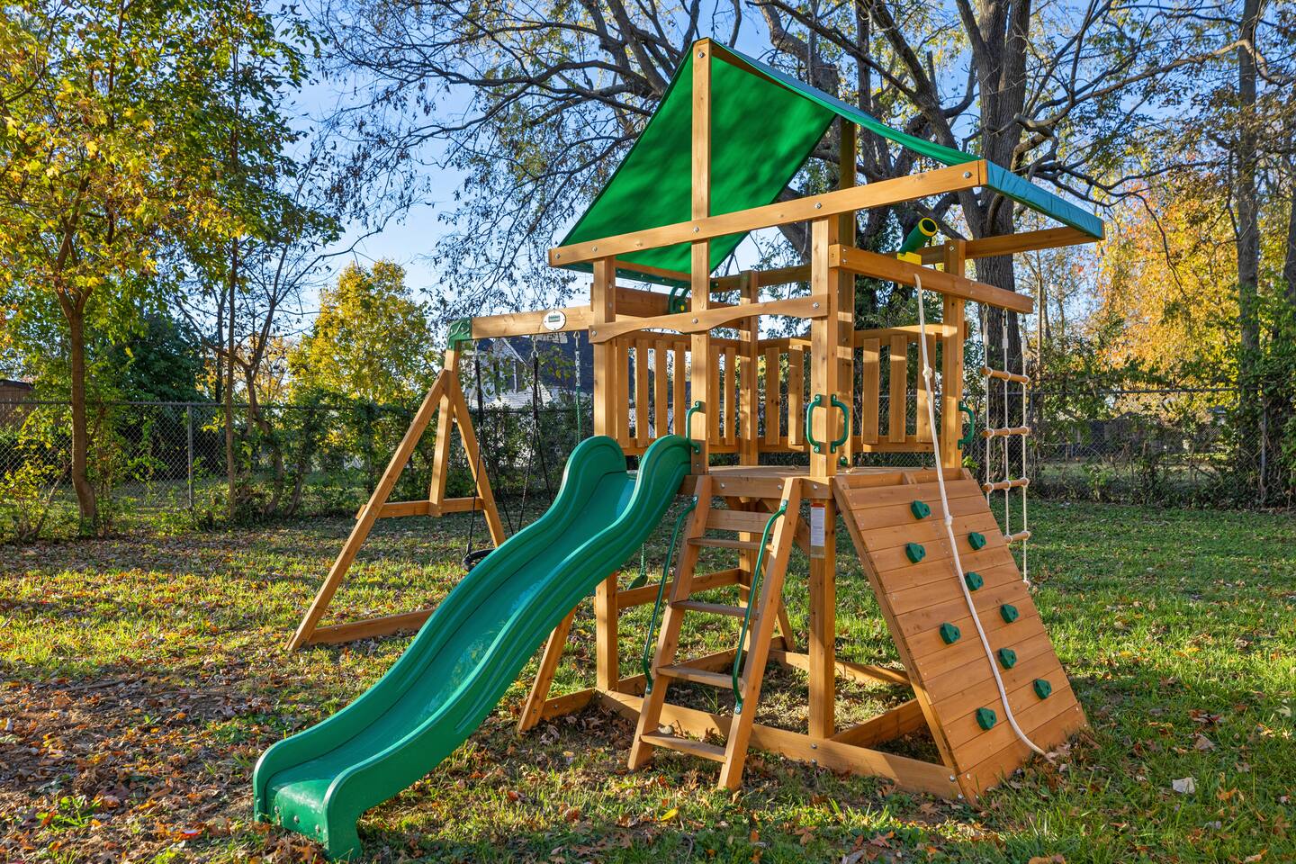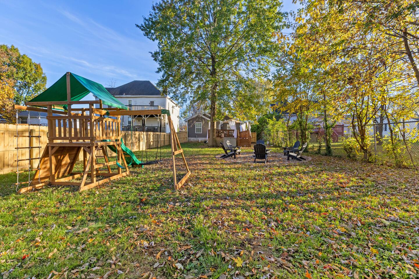 Step into a charming garden-themed bungalow, adorned with delightful decor and featuring plush mattresses in every bedroom. The fully equipped kitchen is ready for all your cooking or entertaining needs. Unwind in the private backyard, where there’s something for everyone—kids can enjoy the playground and explore the backyard wile the adults relax on the porch or in the hot tub.