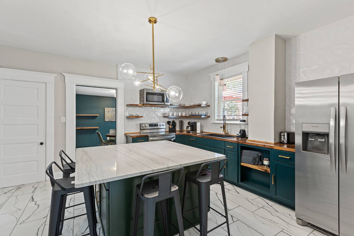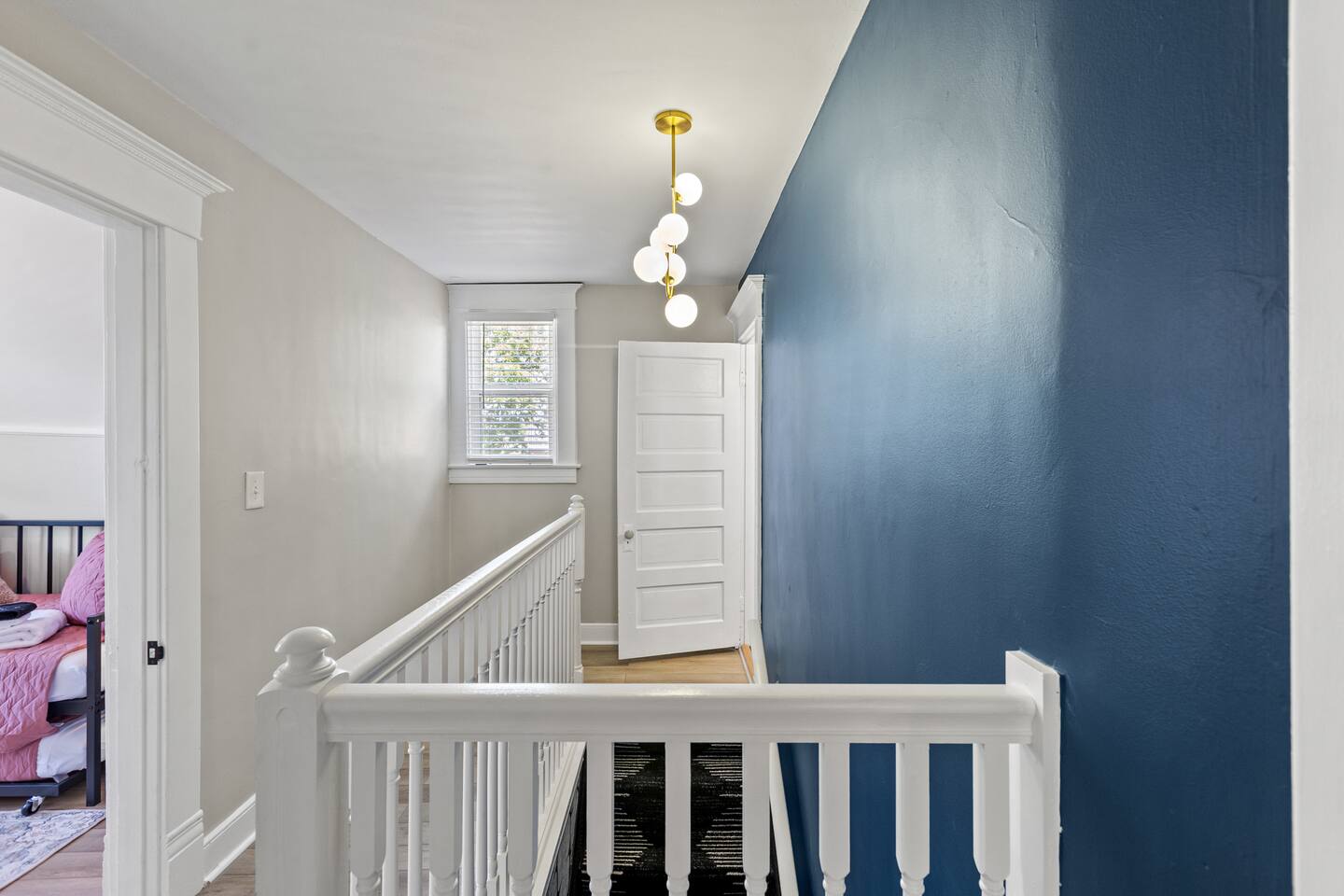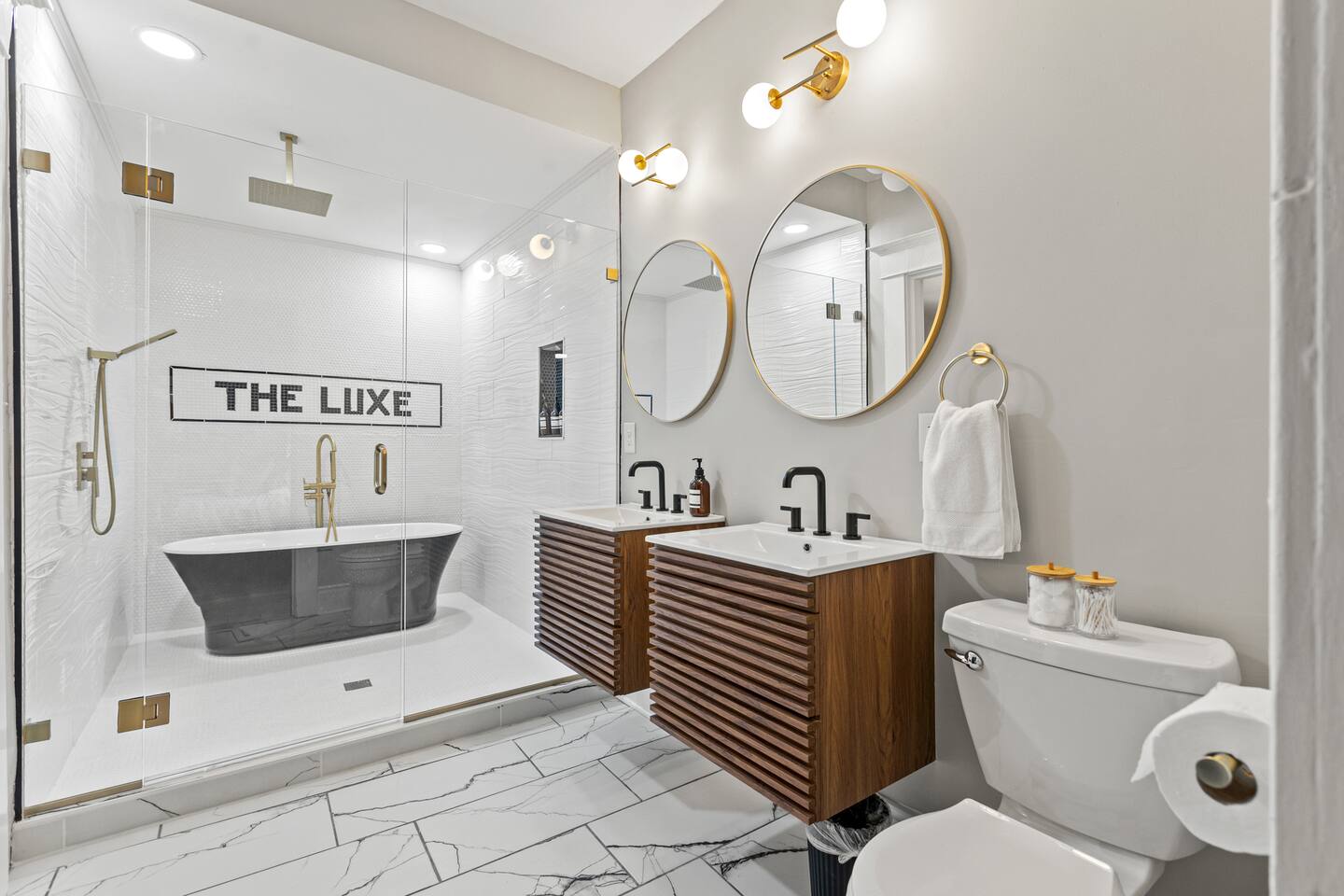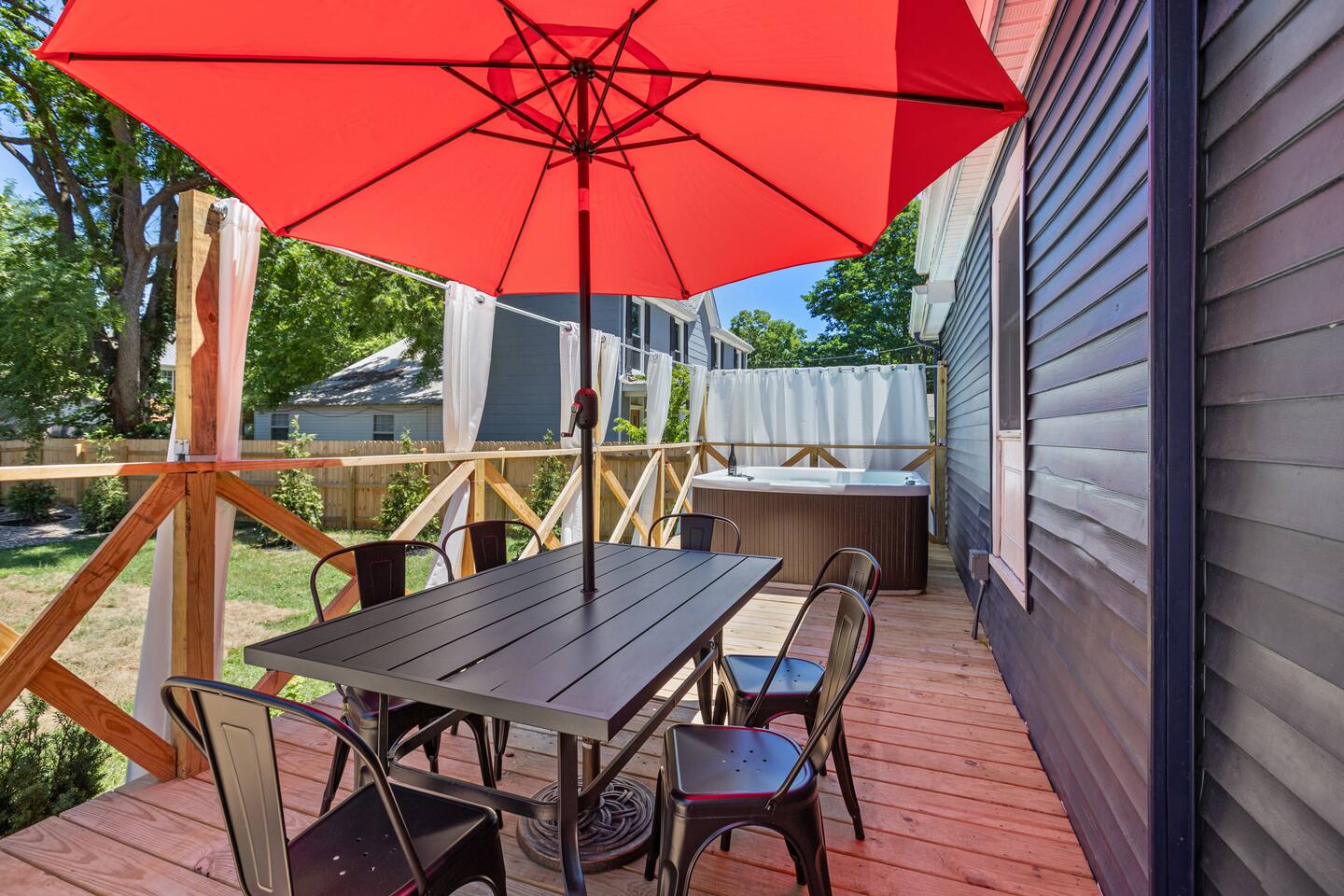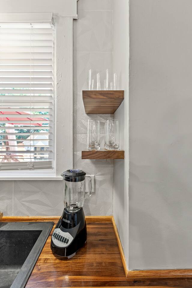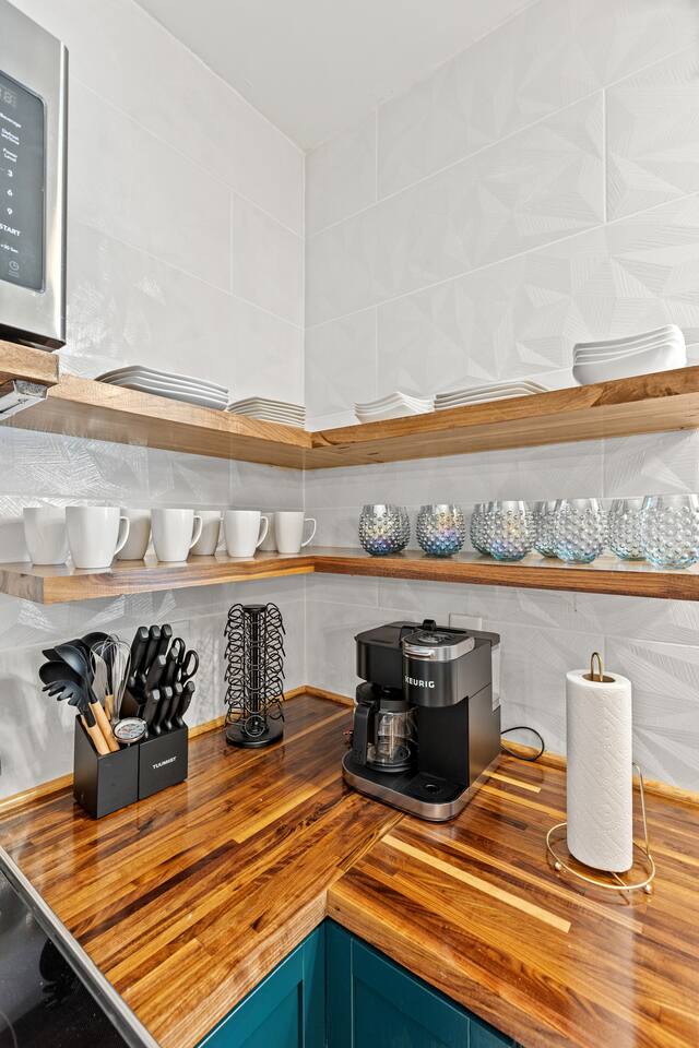 Enjoy our fully remodeled home with all the bells and whistles. 4 bedrooms have king beds and ceiling fans. The fifth bedroom has a pull out twin trundle bed. Two bedrooms are located on the first floor and three bedrooms are located up stairs. The upstairs bedrooms have window units for AC but we ensure the temperature will be very comfortable and to your liking whatever season we are in! Your booking includes exclusive access to enjoy our private bar for your events or just personal enjoyment. WE DO NOT PROVIDE ANY ALCOHOL FOR THIS SPACE, but you are more than welcome to bring your own or hire a bartender for an event. We have a 6 person hot tub located on the back deck that is always in service. Our backyard is private and comes with outdoor furniture, a fire pit and grill, but is not fully fenced due to the driveway. We cannot wait for you to experience “The Luxe” way, as our visitor expectations are our number one priority.
