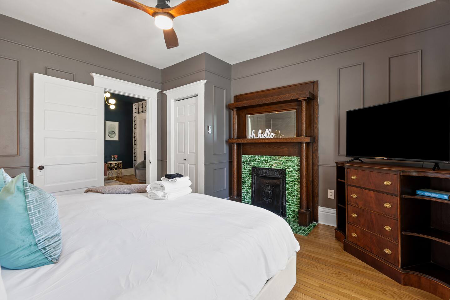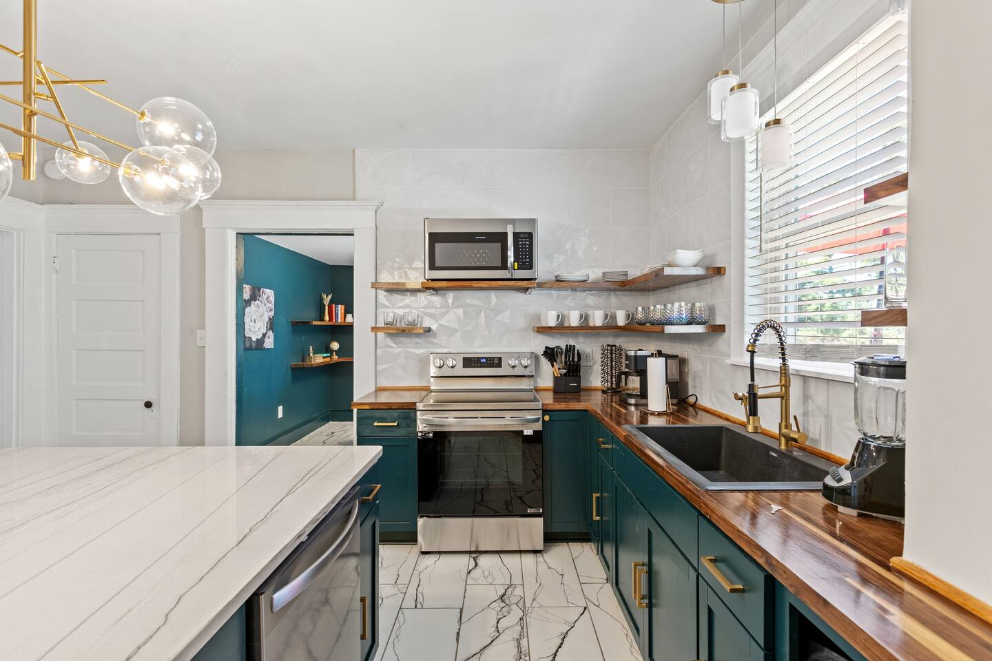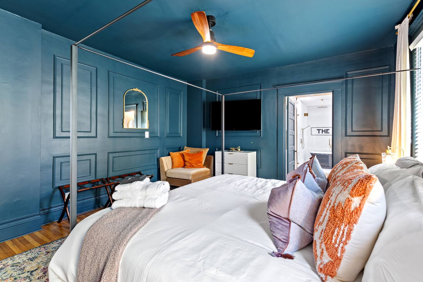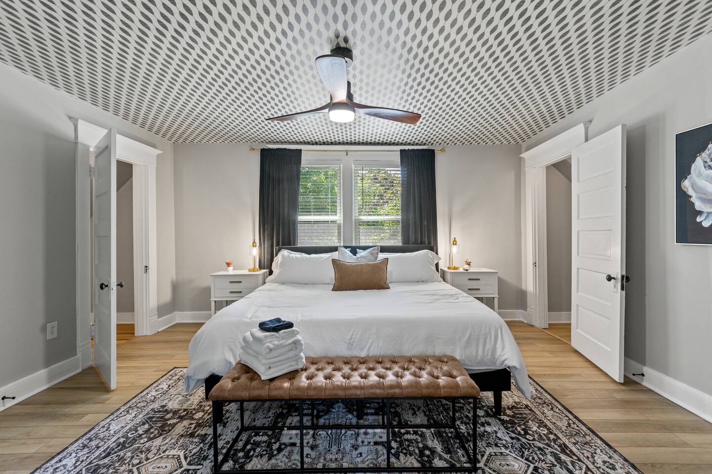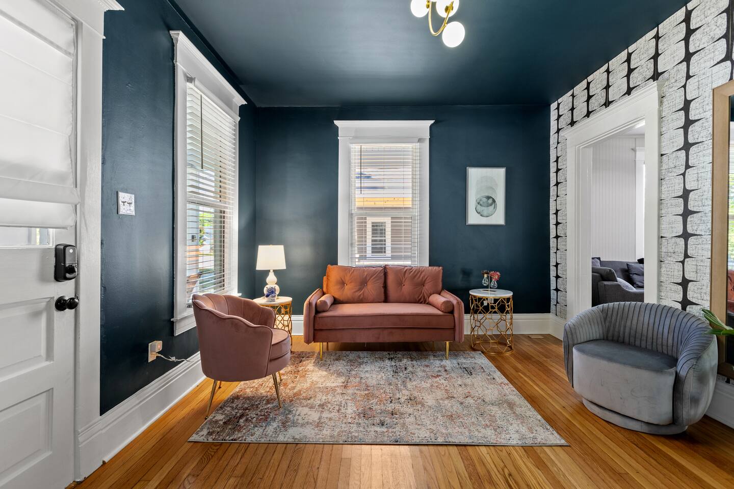 Enjoy our fully remodeled home with all the bells and whistles. 4 bedrooms have king beds and ceiling fans. The fifth bedroom has a pull out twin trundle bed. Two bedrooms are located on the first floor and three bedrooms are located up stairs. The upstairs bedrooms have window units for AC but we ensure the temperature will be very comfortable and to your liking whatever season we are in! Your booking includes exclusive access to enjoy our private bar for your events or just personal enjoyment. WE DO NOT PROVIDE ANY ALCOHOL FOR THIS SPACE, but you are more than welcome to bring your own or hire a bartender for an event. We have a 6 person hot tub located on the back deck that is always in service. Our backyard is private and comes with outdoor furniture, a fire pit and grill, but is not fully fenced due to the driveway. We cannot wait for you to experience “The Luxe” way, as our visitor expectations are our number one priority.